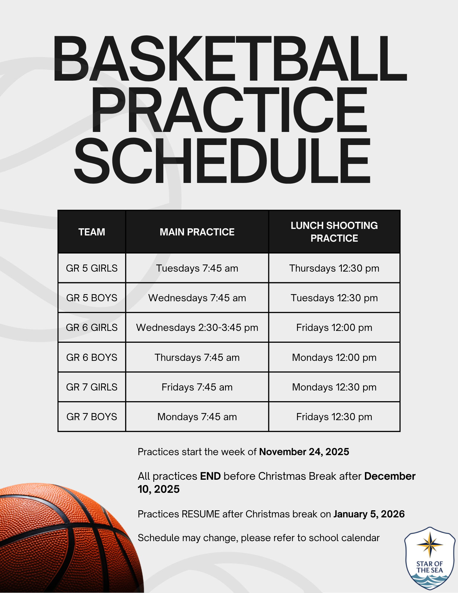 Welcome to basketball season! We have finalized the practice schedules starting the week of November 24th. See practice schedule HERE and posted below. Once confirmed, the complete games schedule will be published.