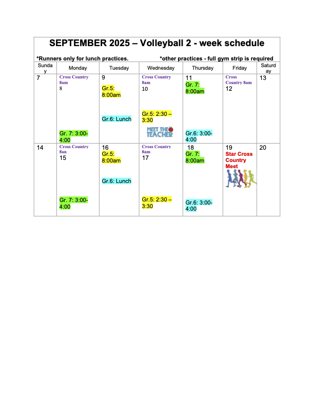 Volleyball will be offered for all girls in grade 5, 6 and 7. Please submit the permission form below to join the team.