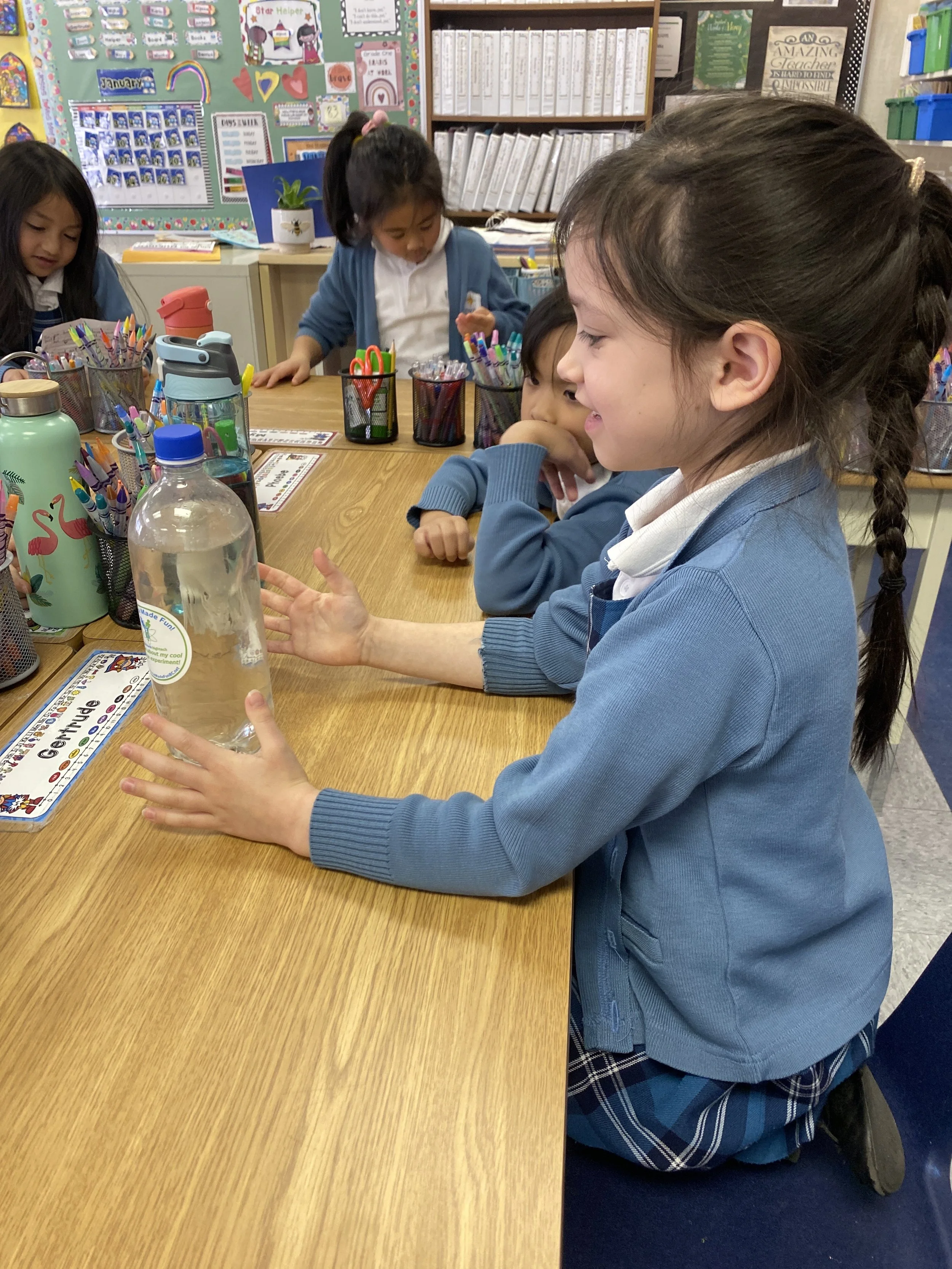 On Monday 30th January we had a “Field Trip” in our Classroom! Cosmic Karen the scientist from High Tough High Tech visited both Grade One classrooms to teach us about the three states of Matter - solid, liquid and gas!