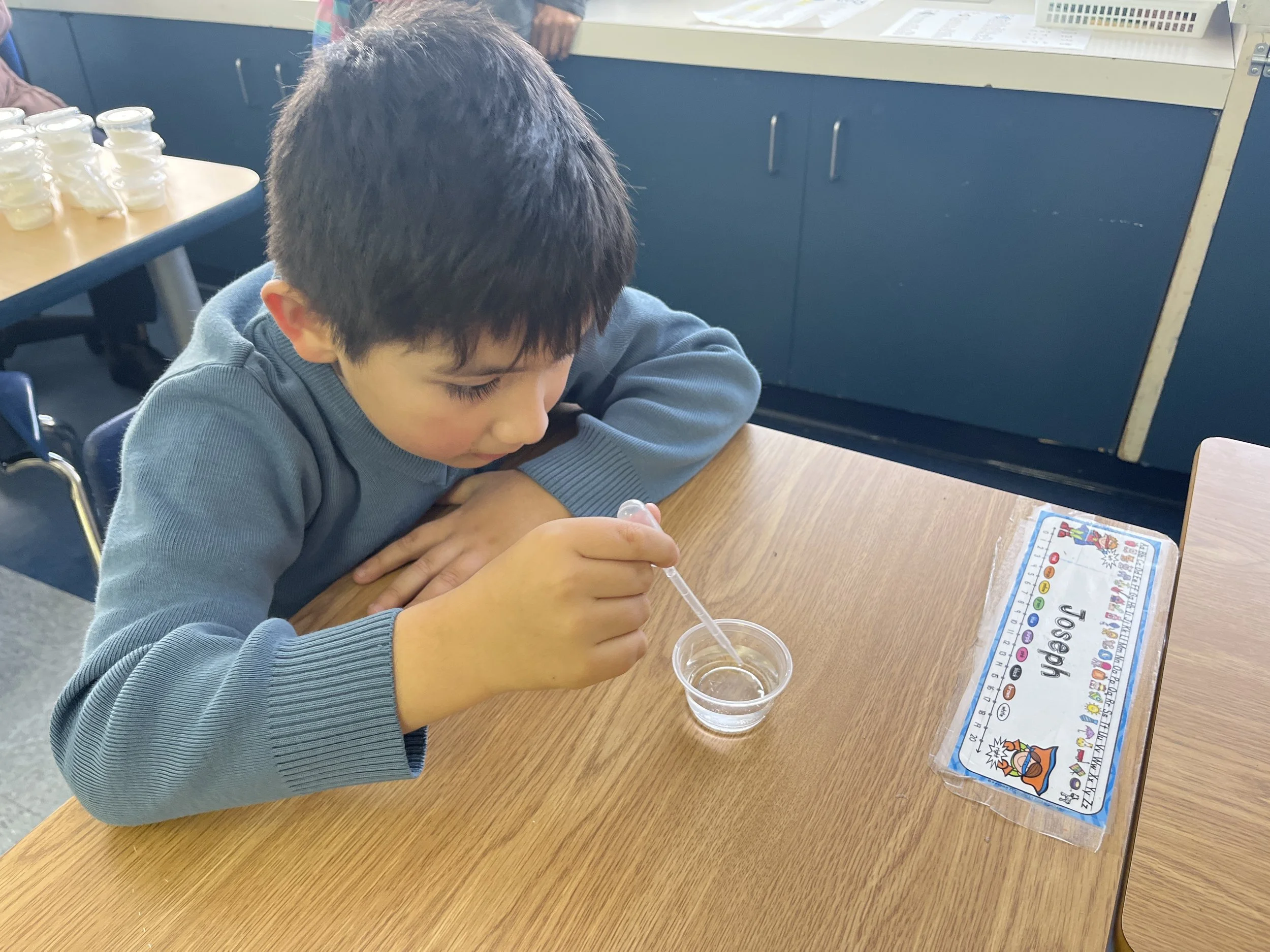 We used pipettes to move water molecules, made CO2 gas in a balloon by mixing vinegar and baking soda, and also made oobleck to bring home which acts as both a liquid and a solid, based on the applied pressure!