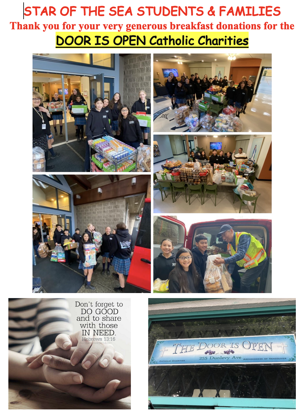 Thank you for your overwhelming support of our breakfast outreach project. Your generous contributions supported the Door is Open, a drop-in ministry in the heart of Vancouver’s Downtown Eastside, that provides food, clothing, counselling, and shelter services and referrals.